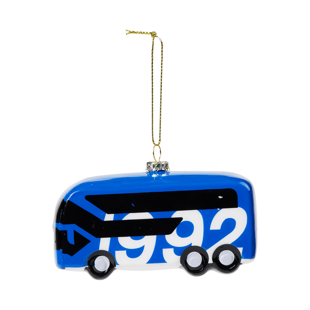 Pynt træet med FCK-bussen som juletræskugle i glas.