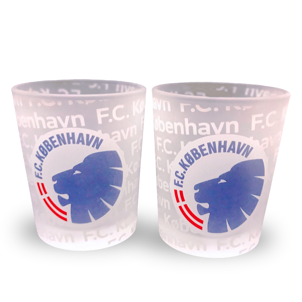 Glas til fyrfadslys med logo og F.C. København tryk.