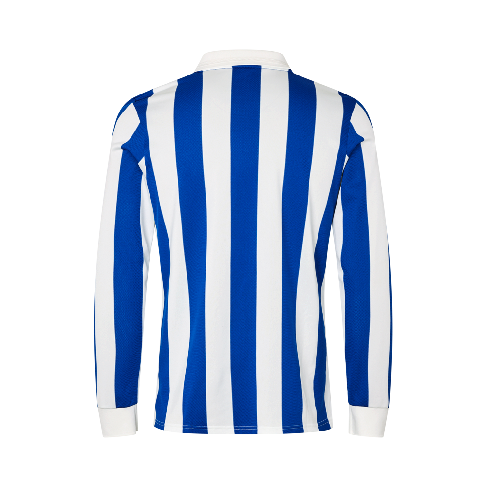 Designet tager afsæt i KB’s klassiske blå og hvide striber og bygger videre på klubbens historiske trøjer, fortolket gennem et originaltadidasheritage-udtryk med det ikoniskeTrefoil-logo på brystet.