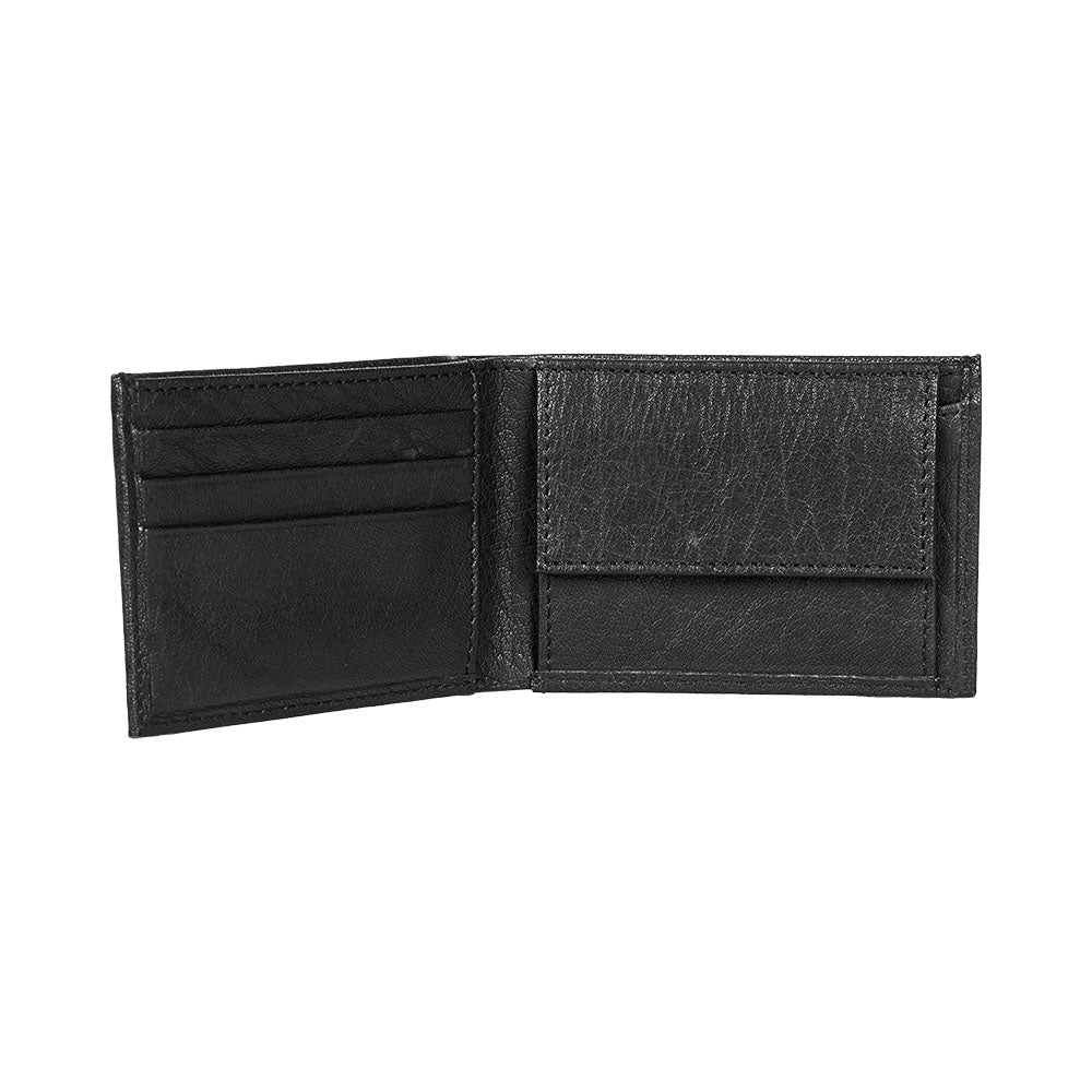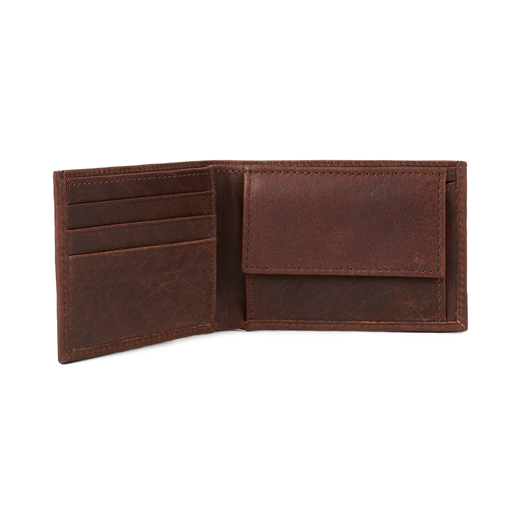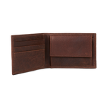 Elegant leather wallet in buffalo hide, with large coin pocket and three credit card pockets,